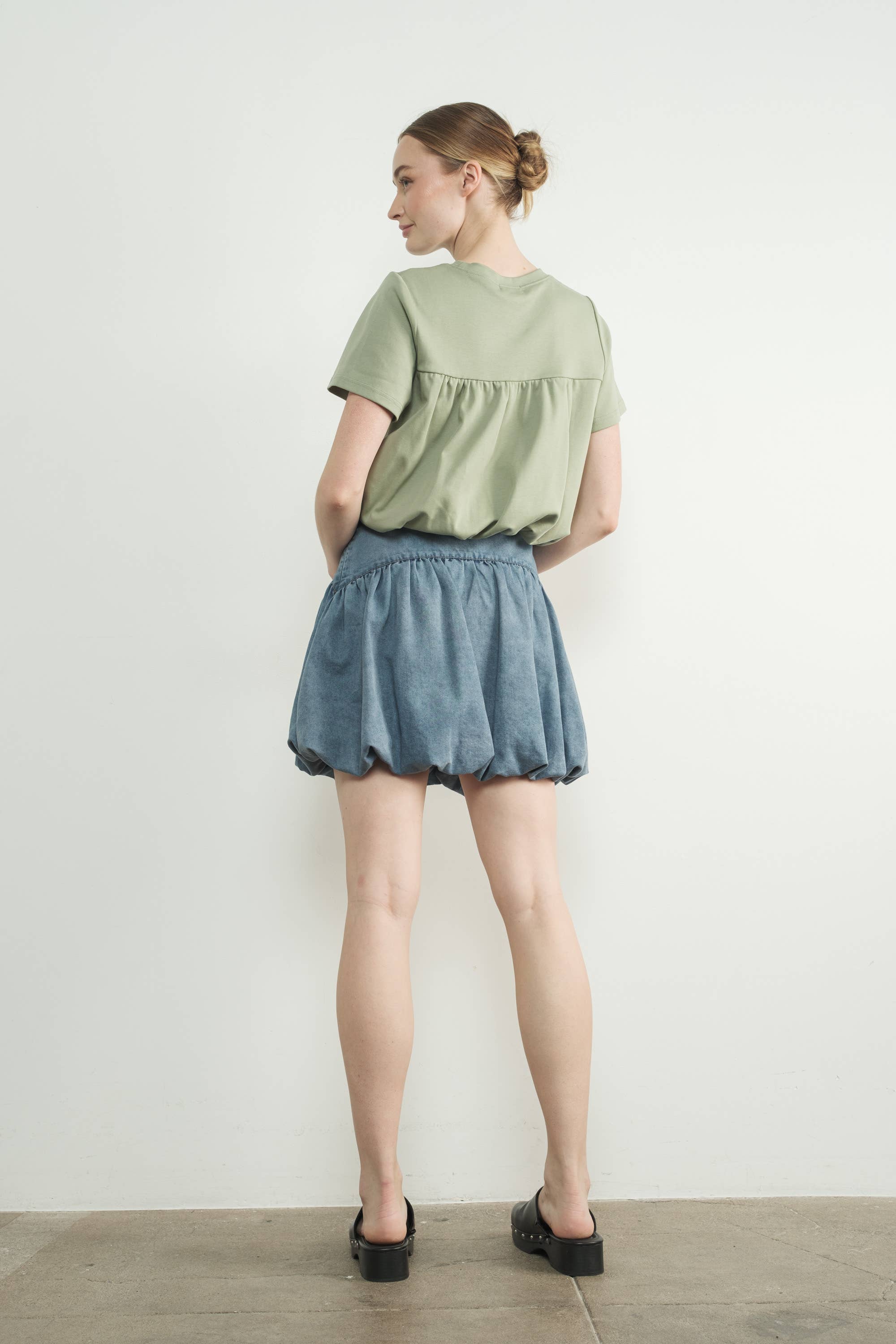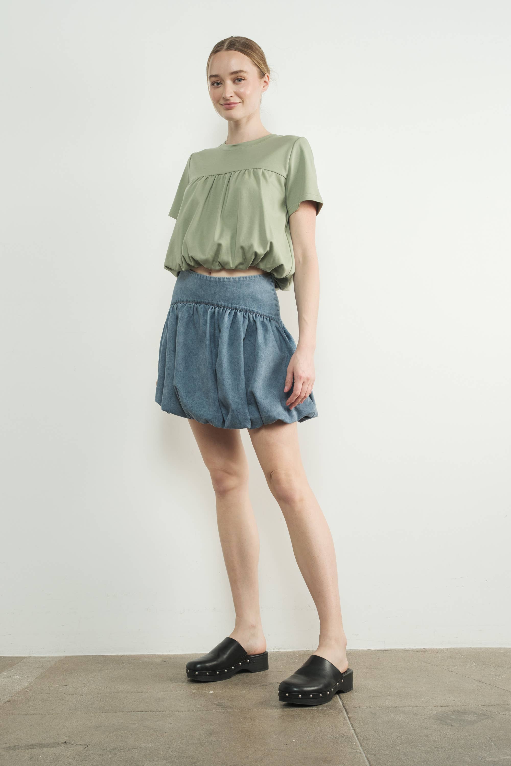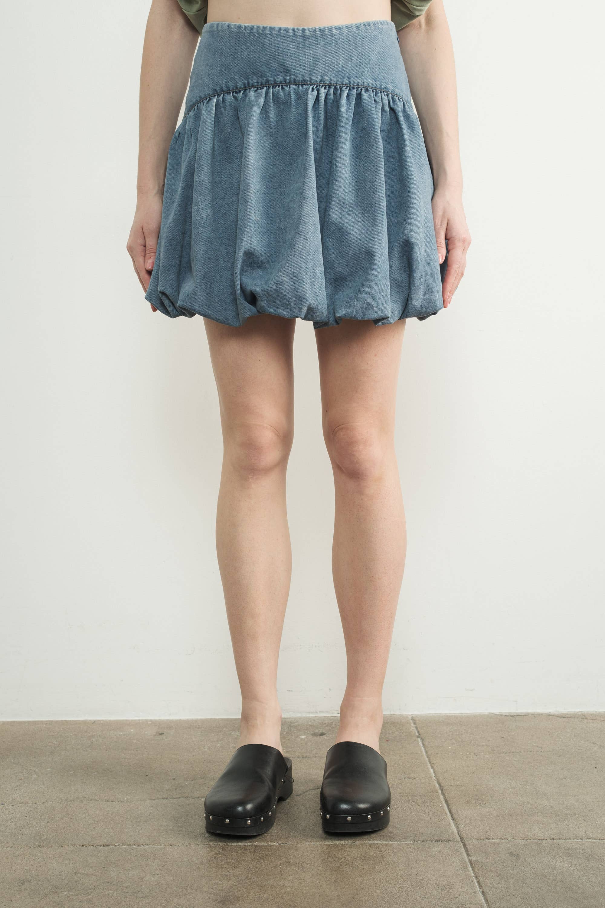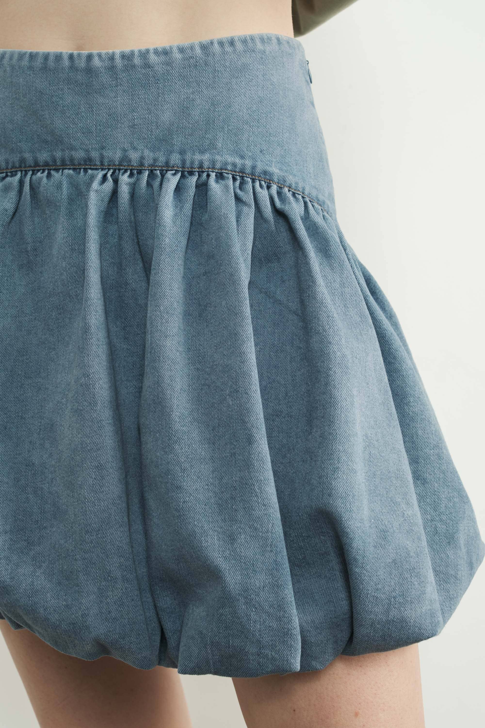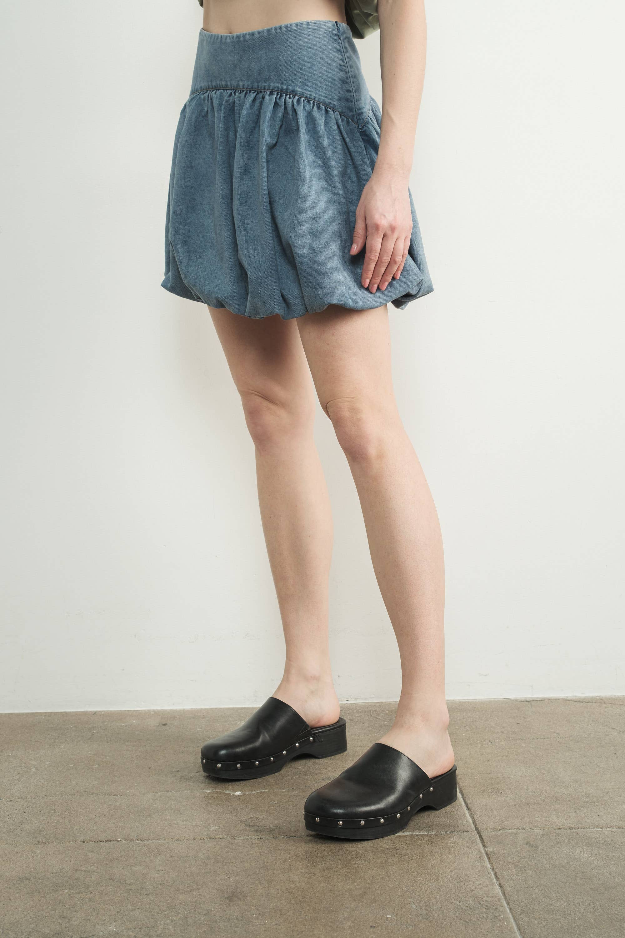 Denim bubble mini skirts