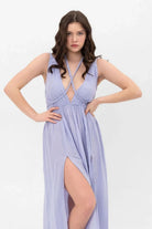 Soft, striking, and made to move—meet the Iris Cross-Front Dress. Crafted from breathable Turkish cotton gauze in a dreamy lavender hue, this piece features a gathered bust with crisscross halter straps and a flattering empire waist. A high front slit adds a playful touch of drama, perfect for golden hour strolls or seaside dinners.