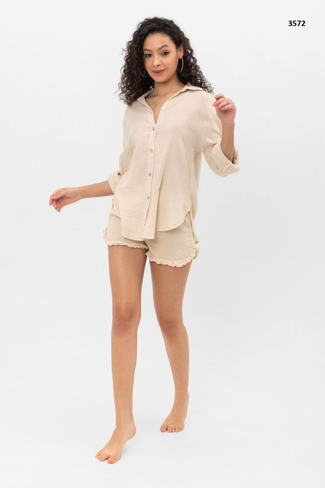 The Calma Cotton Shirt in Beige exemplifies understated sophistication through its thoughtful construction and premium materials. Crafted from pure cotton, this versatile piece delivers breathable comfort suitable for year-round wear, whether layered for cooler seasons or worn solo during warmer months. The neutral beige tone serves as a foundational wardrobe staple, seamlessly coordinating with virtually any color palette or style aesthetic. Its refined silhouette balances structure with ease of movement, making it equally appropriate for professional settings, casual outings, or relaxed home environments. The natural fiber composition ensures durability and improves with wear, developing a subtle patina that enhances its timeless appeal. This is an investment piece designed to transcend seasonal trends and become a dependable favorite for years to come.