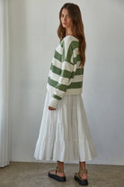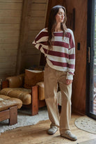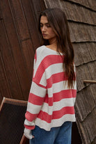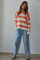 This striped cotton pullover combines comfort with timeless style. Crafted from soft cotton, it features a relaxed drop shoulder design and a classic boat neck for an effortless silhouette. The long sleeves provide warmth without bulk, making it an ideal layering piece. Perfect for casual wear, this knit sweater balances breathability and coziness with subtle, versatile stripes.